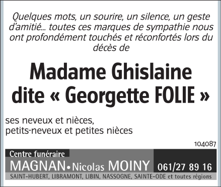Décédée à Libramont (6800) le mercredi 18 mars 2026 à l'âge de 96 ans
