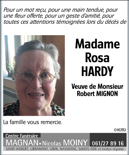 Décédée à Saint-Hubert (6870) le lundi 6 décembre 2021 à l'âge de 86 ans