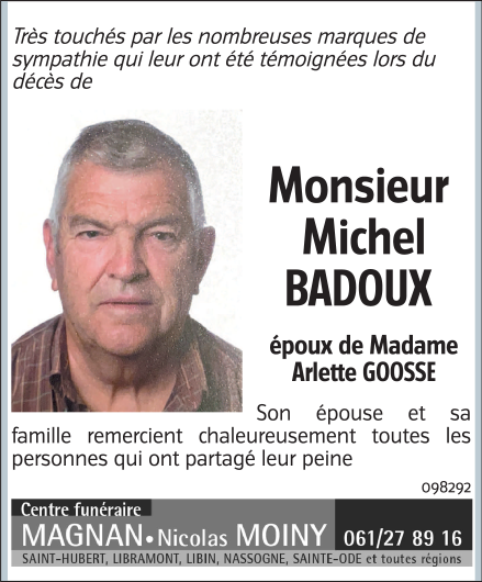 Décédé à Libramont (6800) le lundi 24 novembre 2025 à l'âge de 84 ans