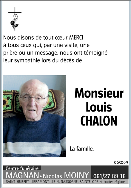 Décédé à Villance (6890) le lundi 1 janvier 2024 à l'âge de 85 ans