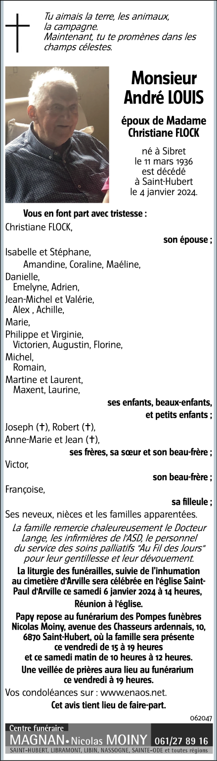 Décédé à Saint-Hubert (6870) le jeudi 4 janvier 2024 à l'âge de 87 ans
