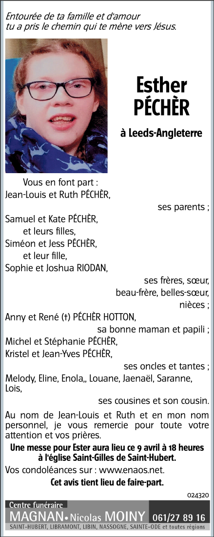 Décédée à New Leeds (AB42, Royaume Uni) le mercredi 6 avril 2022